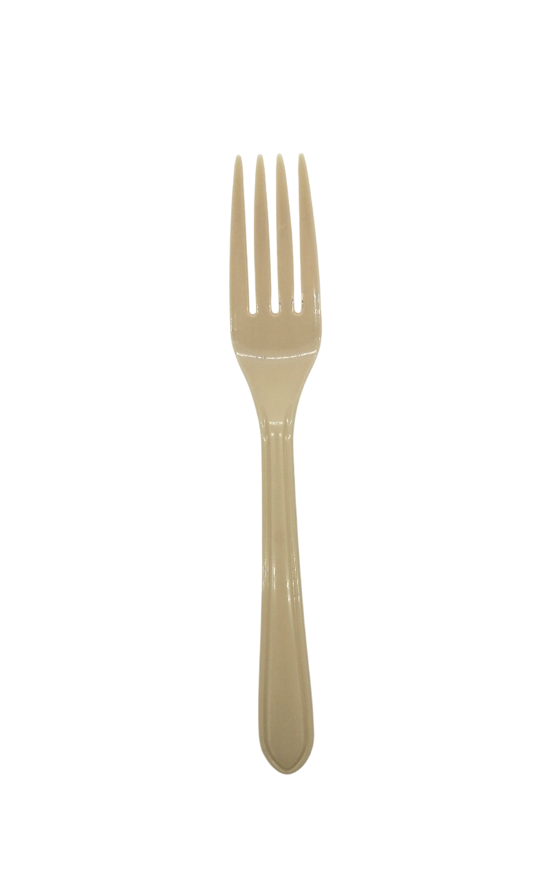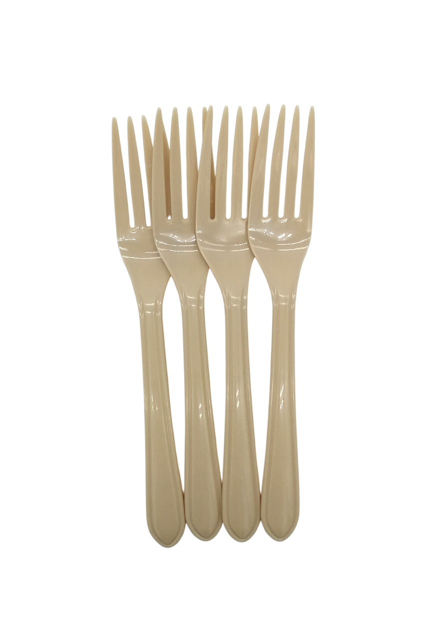 Durable reusable cream plastic forks, ideal for everyday meals, parties, picnics, and catering. Easy to clean and designed for repeated use.