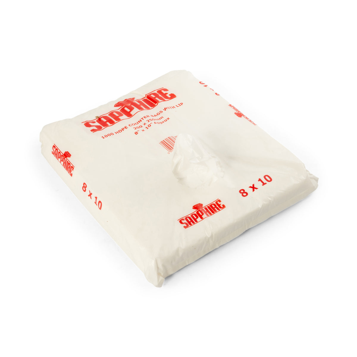 10,000 pcs (8"x10") 200mm x 235mm+15mm lip White Lipped Polypouched Counter Bags