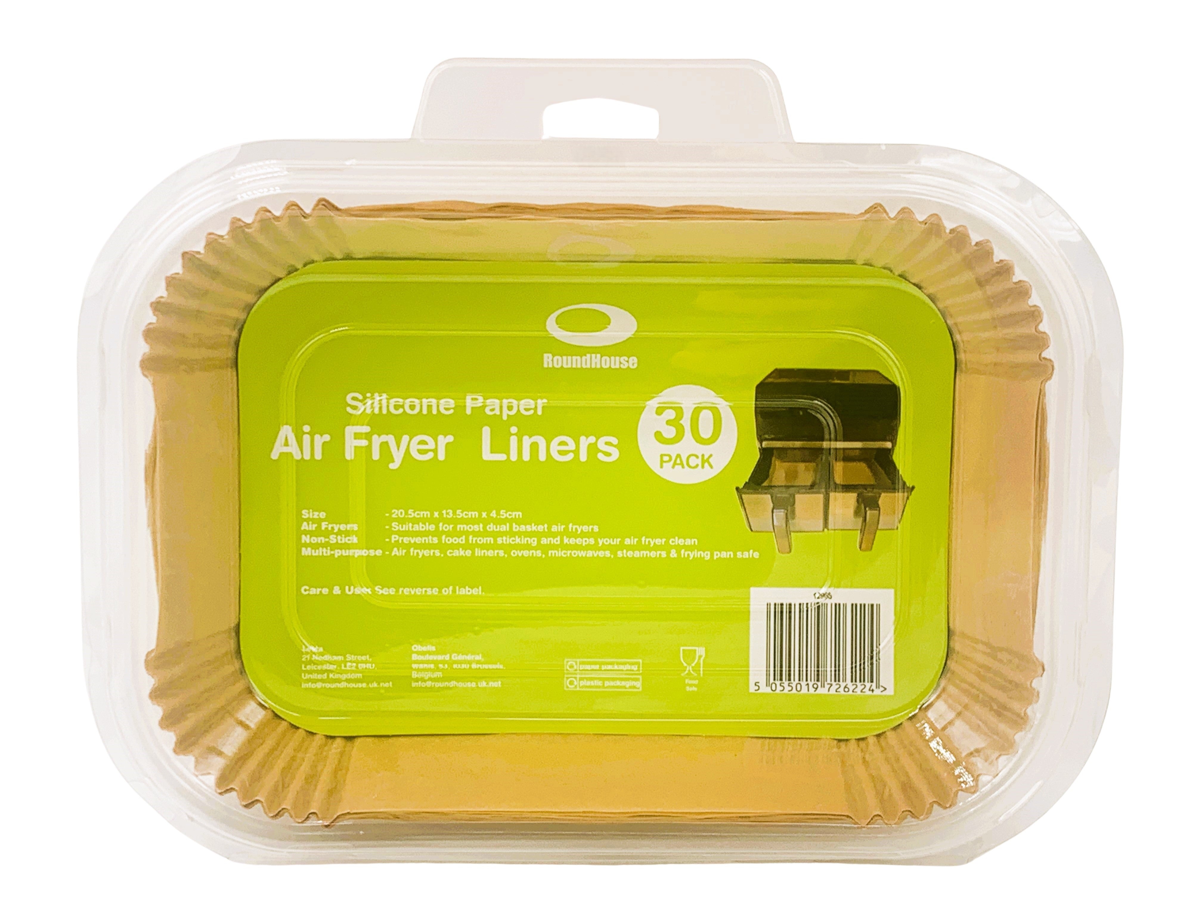 Rectangle non-stick silicone paper air fryer liners in a handy 30 pack. Keeps your air fryer clean, reduces mess, and makes cooking easier. These are multi purpose suitable for air fryers, cake liners, ovens, microwaves, steamers and frying pans.
