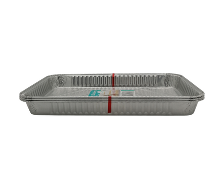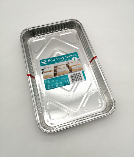 Sturdy rectangular foil traybake tins perfect for baking and cooking large dishes. These tins are ideal for bakeries, catering services, and households that need a reliable and disposable baking solution.
