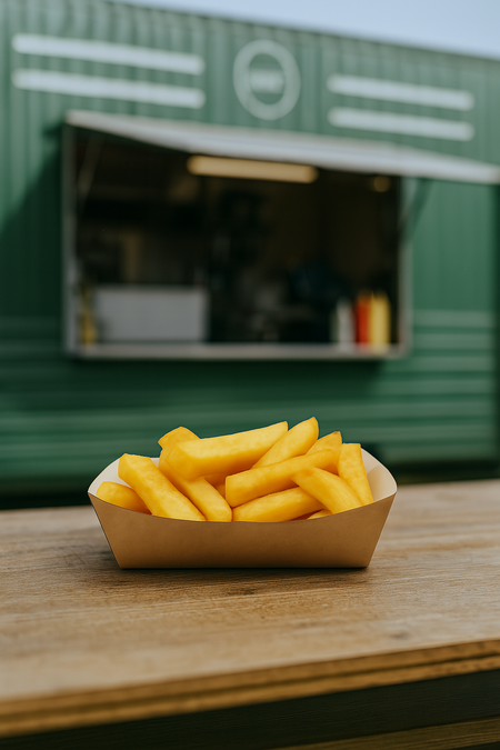 A stylish, eco-friendly serving solution made from sturdy kraft paperboard. Ideal for presenting street food, snacks, or sides, these trays offer a practical and sustainable option for food-to-go businesses. Made from strong, recyclable materials, it's ideal for both casual and formal events.