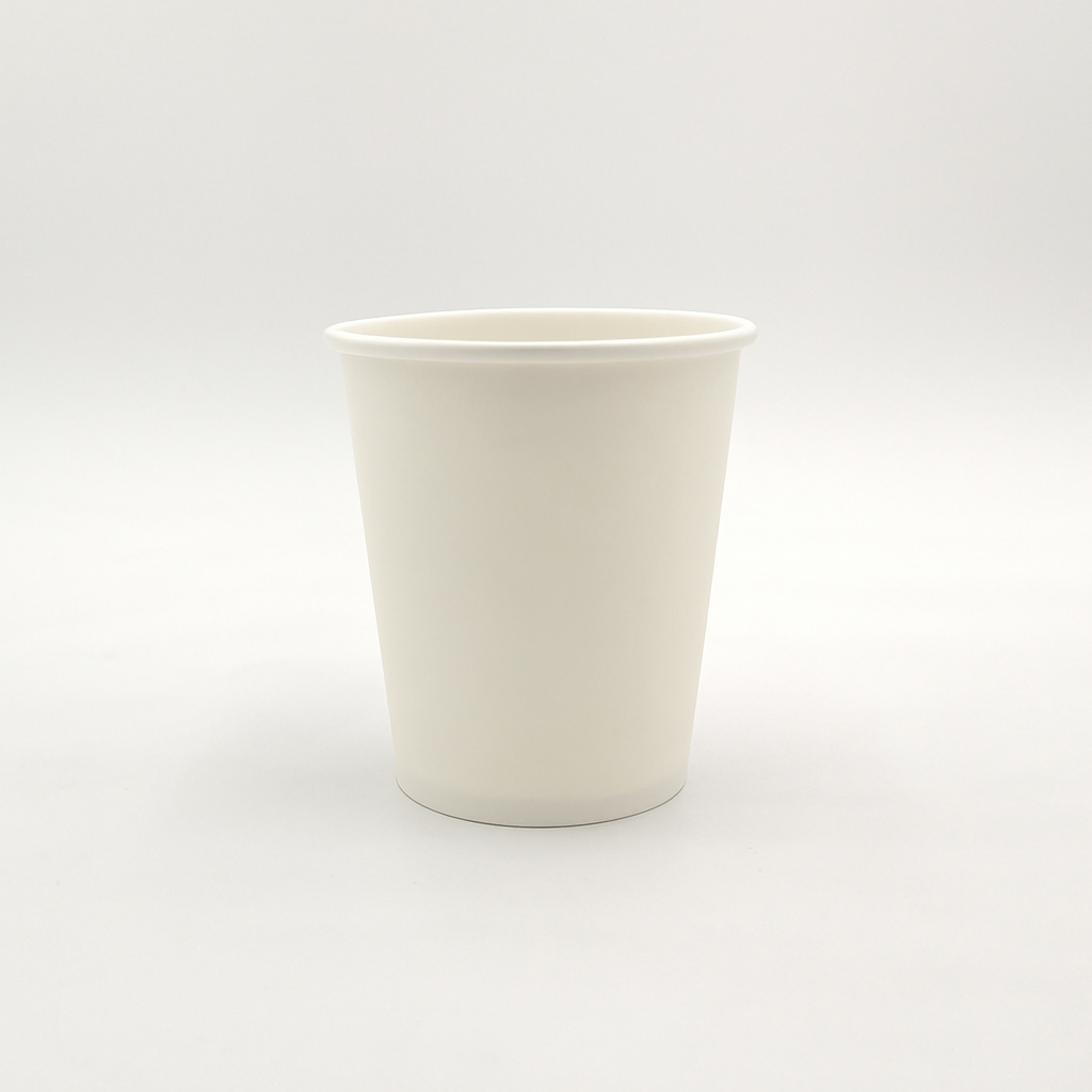 Durable single-wall white cups ideal for serving hot beverages. These cups are perfect for coffee shops, cafes, and takeaways, providing a smooth drinking experience with a simple design that is great for custom branding.